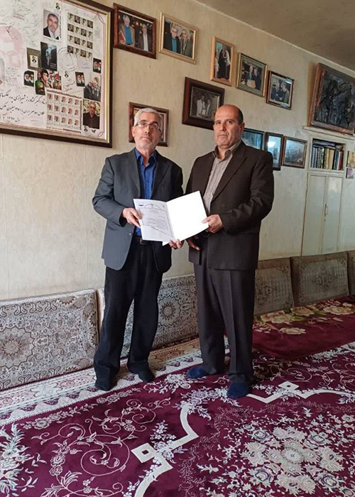 دیدار مدیر کل بنیاد ایثارگران و بنیاد شهید شهرستان های استان تهران جناب آقای عباسعلی رضایی و معاون بنیاد شهید و ایثارگران کل کشور جناب آقای دکتر قاضی زاده با استاد اکبر کشاورز شیرازی